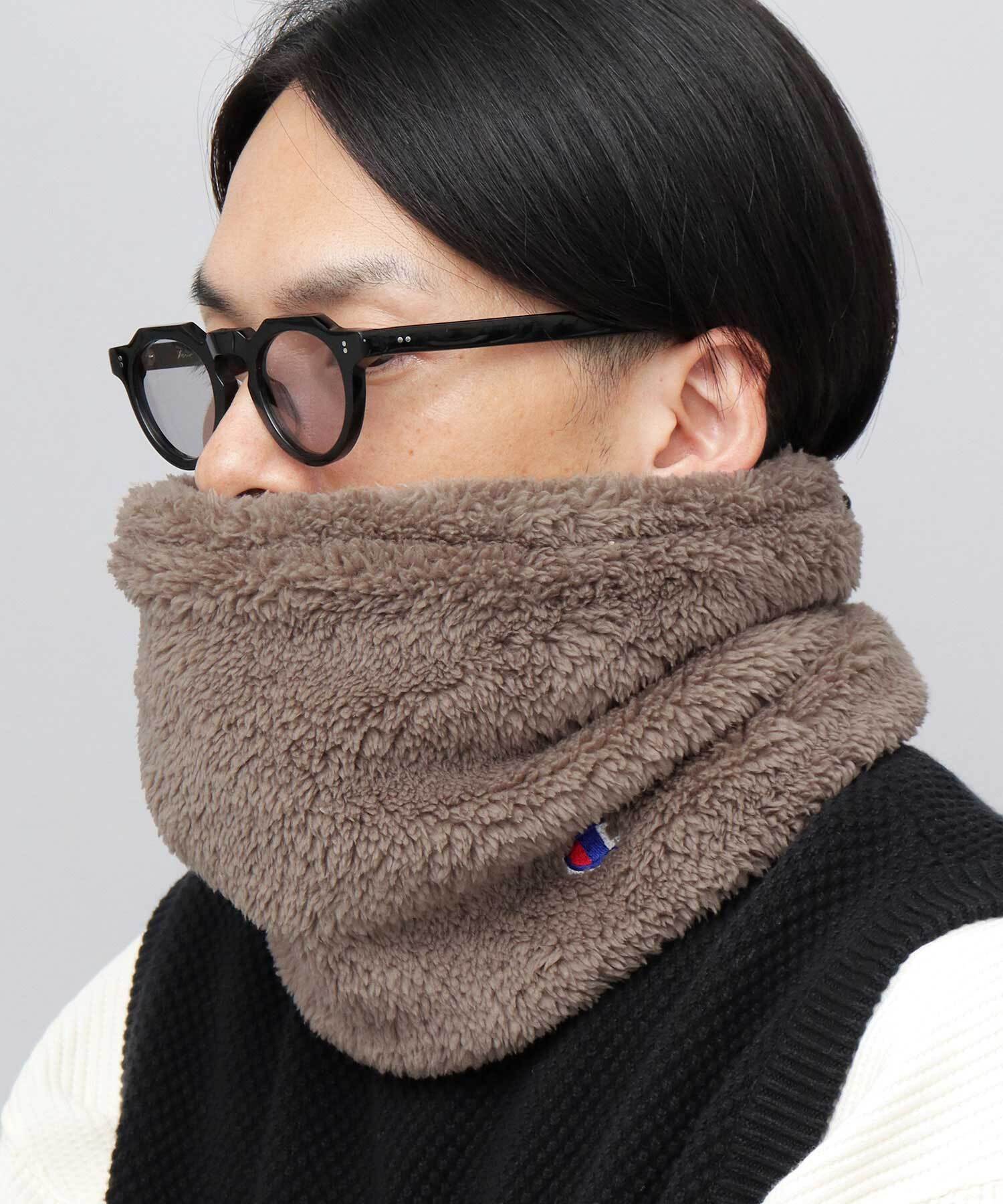 アメリカを代表するスポーツブランド”Champion(チャンピオン)”のネックウォーマー。ふんわり優しい肌触りのボア素材を全面に使用した、秋冬らしい暖かみのある表情が魅力。しっかり高さのある作りで、首元をすっぽりと包み込み、冷たい風や寒さからしっかりガード。表地、裏地の両面ボア仕様で、心地良い着け心地と暖かさをキープ。柔らかな素材感で、高さのある作りでありながらもストレスのない着け心地に。首部分のゴム製のドローコードによるフィット感の調節も可能で、風の侵入を防げる、防寒性抜群の作り。首元でヘタっとならないように、高さとボリューム感を出した作りもポイント。タウンユースにはもちろん、通勤や通学にもおすすめ。