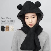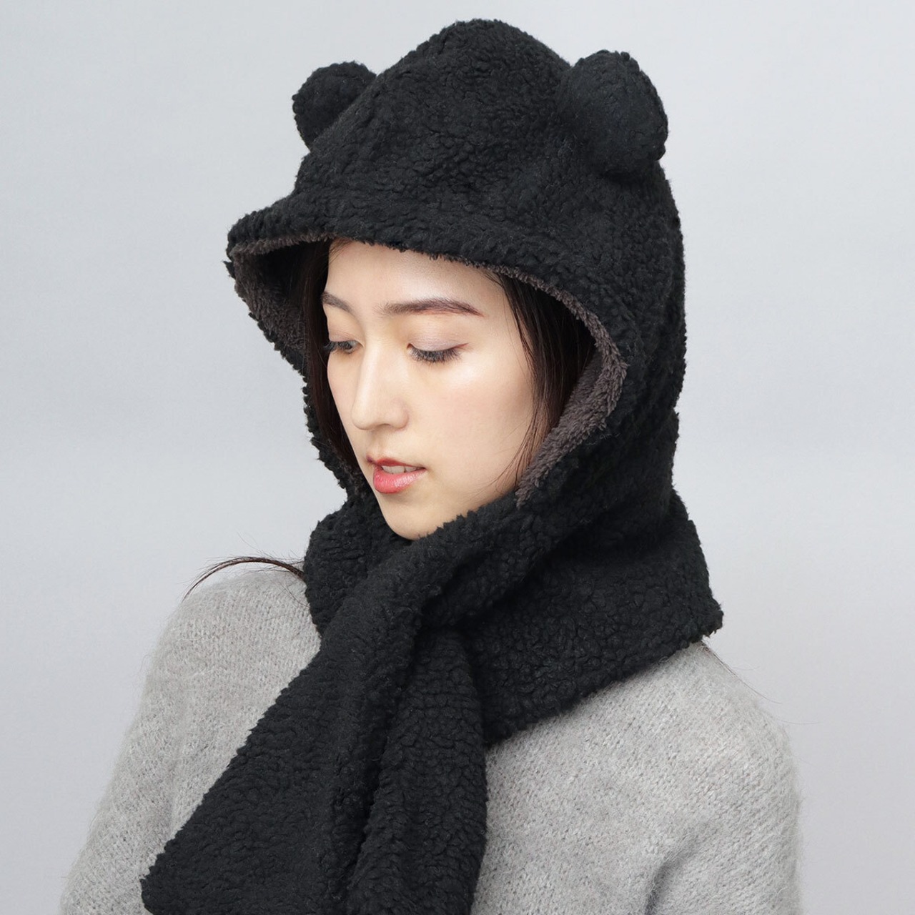 ◆SNSで大人気!くま耳でトレンドスタイルに“ベアイヤーフードマフラー”◆
