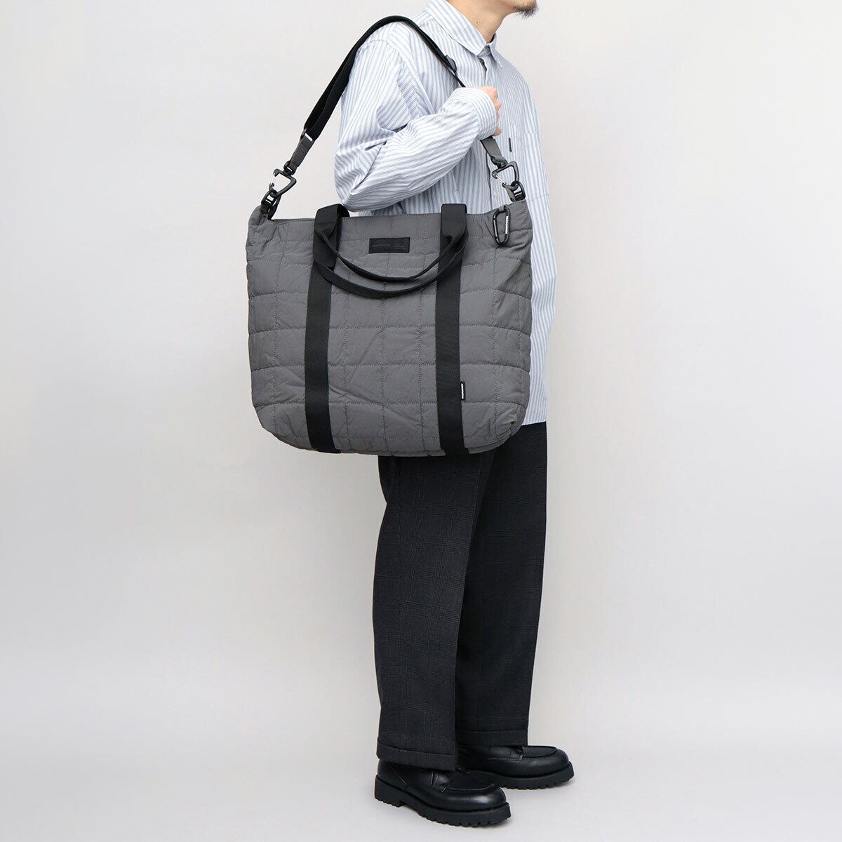柔らかいフォルムのキルトショルダートート。性別やシーンを問わず使えるミニマルデザインながら、スタイリングのアクセントにもなるビッグサイズが魅力。