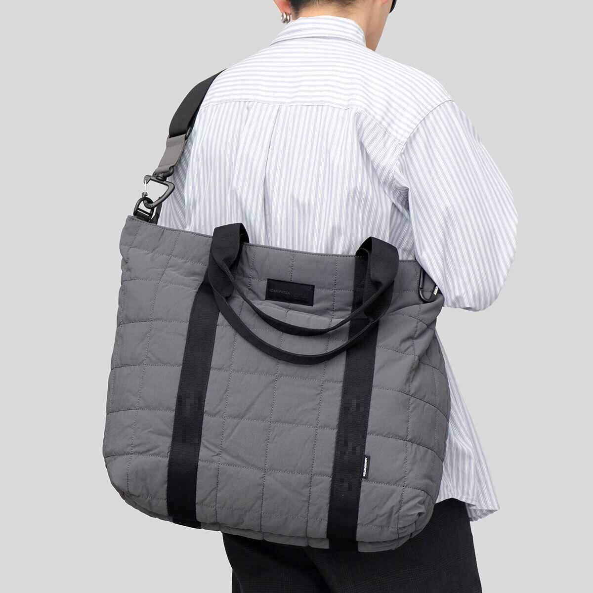 柔軟な発想による、ニューベーシックなデザインが特徴のブランド“ADAM PATEK(アダム パテック)”のキルトショルダートート。定番のスクエアキルト素材を更に軽量化した、ビッグサイズながら軽く、デイリー使いしやすいアイテム。収納スペースは、A4サイズが楽に収まる大容量サイズ。マチ幅をしっかりとっているので、幅のある荷物も楽に収納可能◎用途やシーンに合わせて、手持ちとしても、ショルダーベルトで肩掛け・斜め掛けも。撥水生地を使用しているので、いつものお出掛けや通勤・通学、アウトドア・旅行など幅広いシーンで活躍すること間違いなしです。